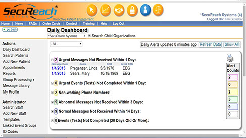 "SecuReach is a reliable way to ensure that test results are delivered to patients. SecuReach has totally eliminated the time consuming act of trying to track down patients to inform them of test results. Patients are very pleased with the system and find it easy to use. They like the reliable delivery of their test results as well as the friendly reminders of their scheduled appointments.